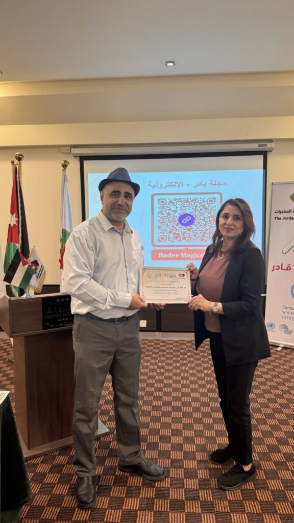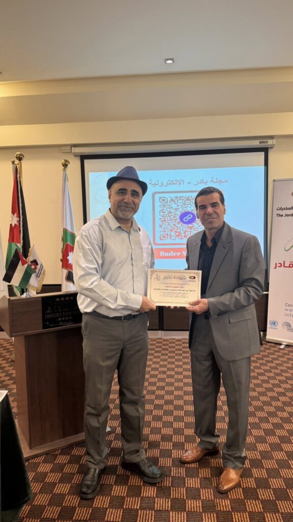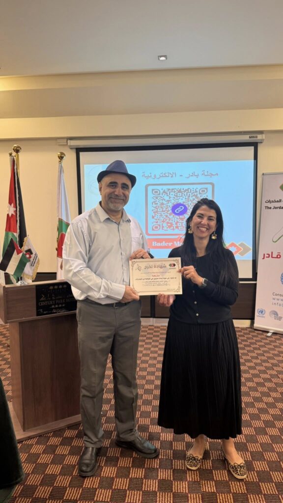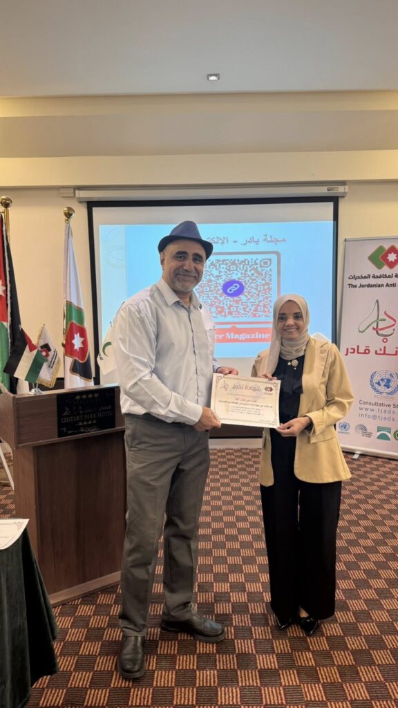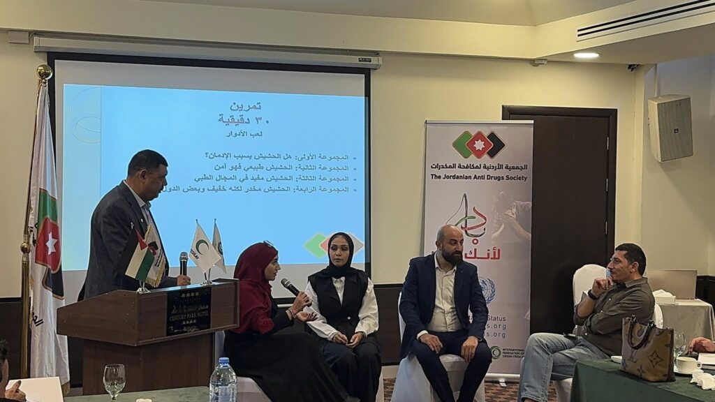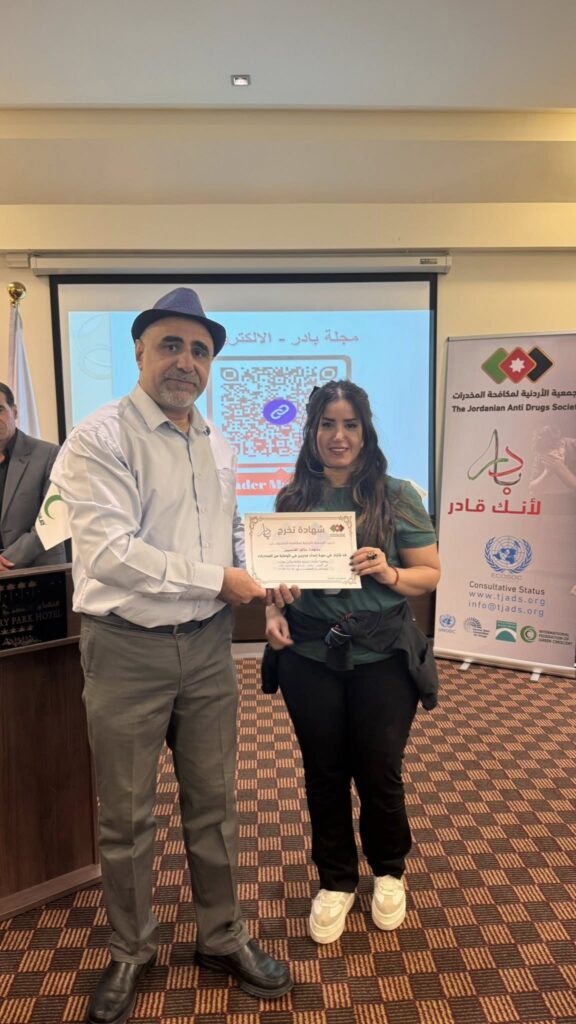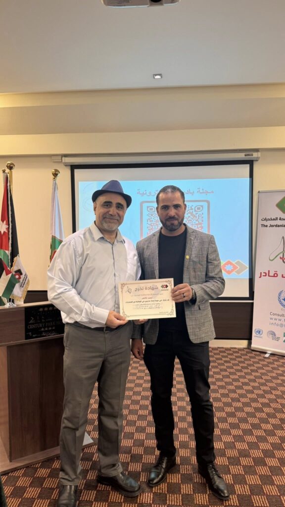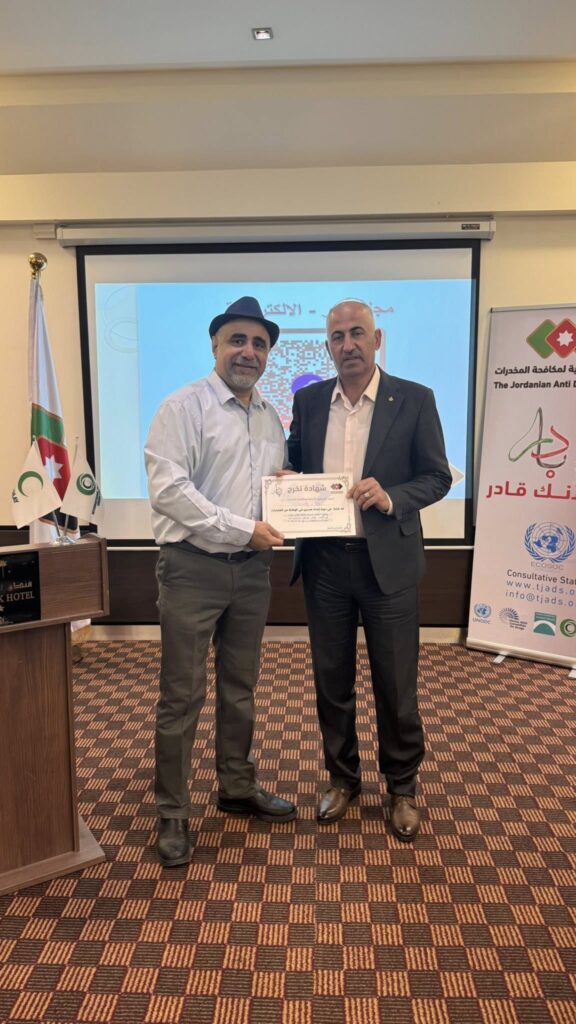 ضمن برنامج بناء قدرات أعضاء الجمعية الأردنية لمكافحة المخدرات (TJADS) تم اليوم تنفيذ دورة تدريبية نوعيّة تهدف لرفع كفاءة أعضاء الجمعية في مهارات الإلقاء، وتصميم محاضرات التوعية، وتطوير قدراتهم في العمل الوقائي.