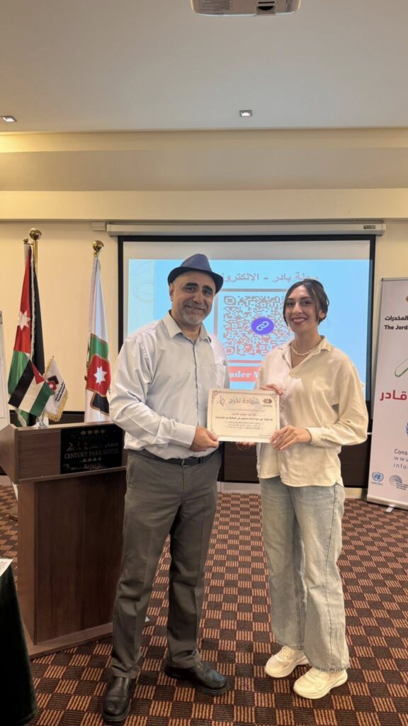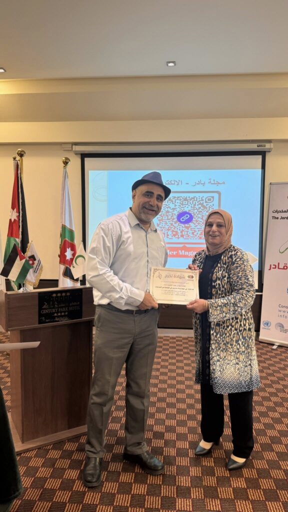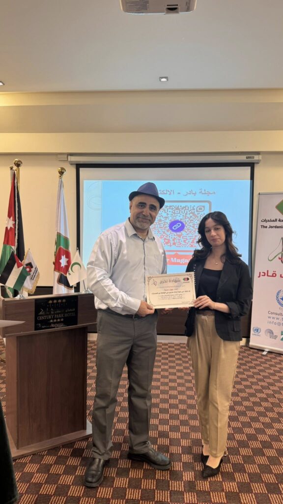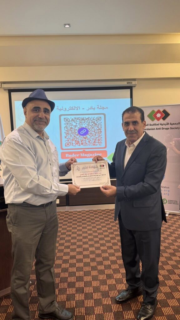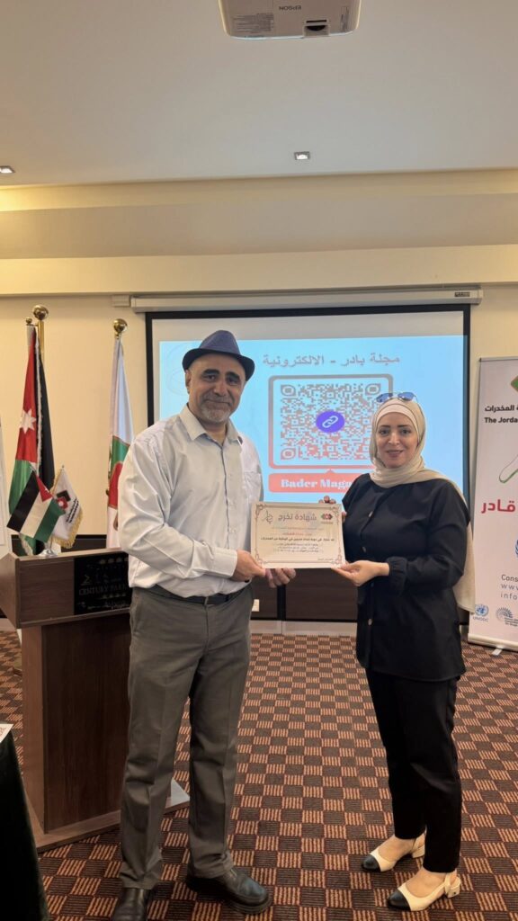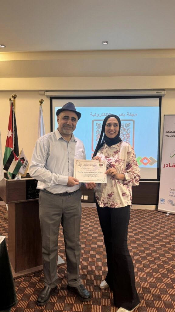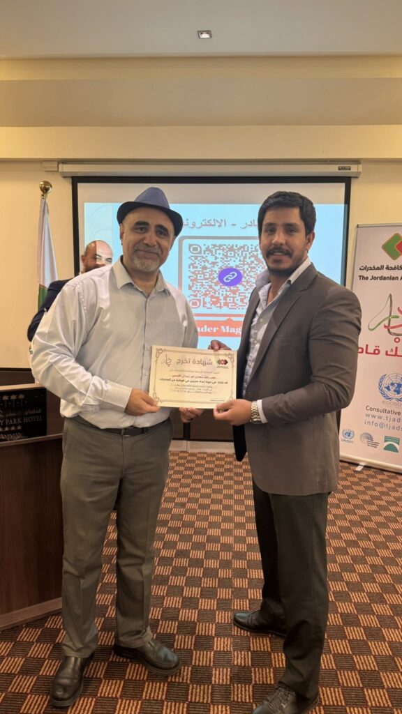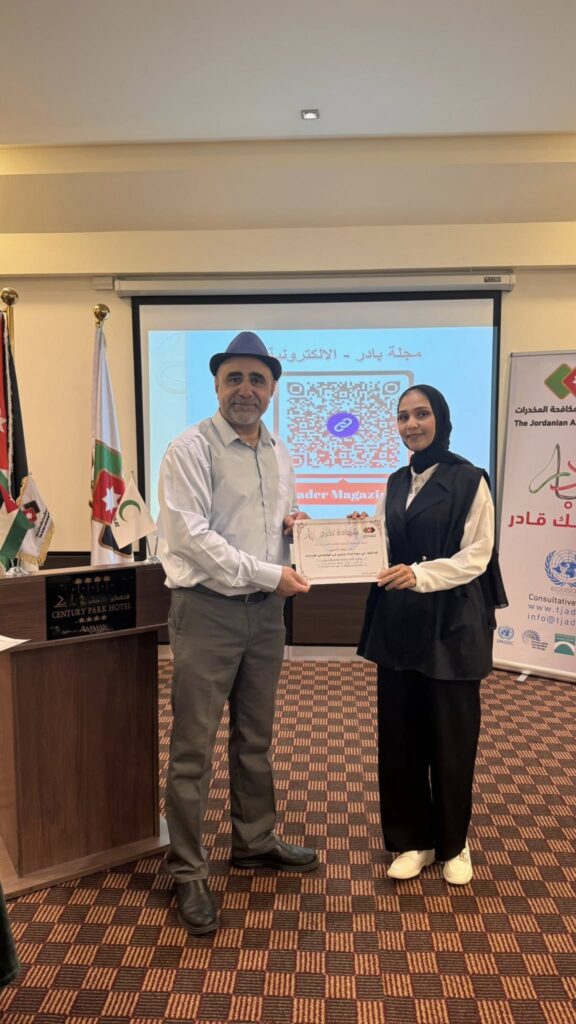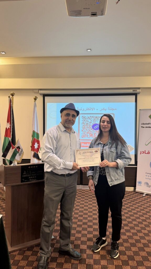 ضمن برنامج بناء قدرات أعضاء الجمعية الأردنية لمكافحة المخدرات (TJADS) تم اليوم تنفيذ دورة تدريبية نوعيّة تهدف لرفع كفاءة أعضاء الجمعية في مهارات الإلقاء، وتصميم محاضرات التوعية، وتطوير قدراتهم في العمل الوقائي.